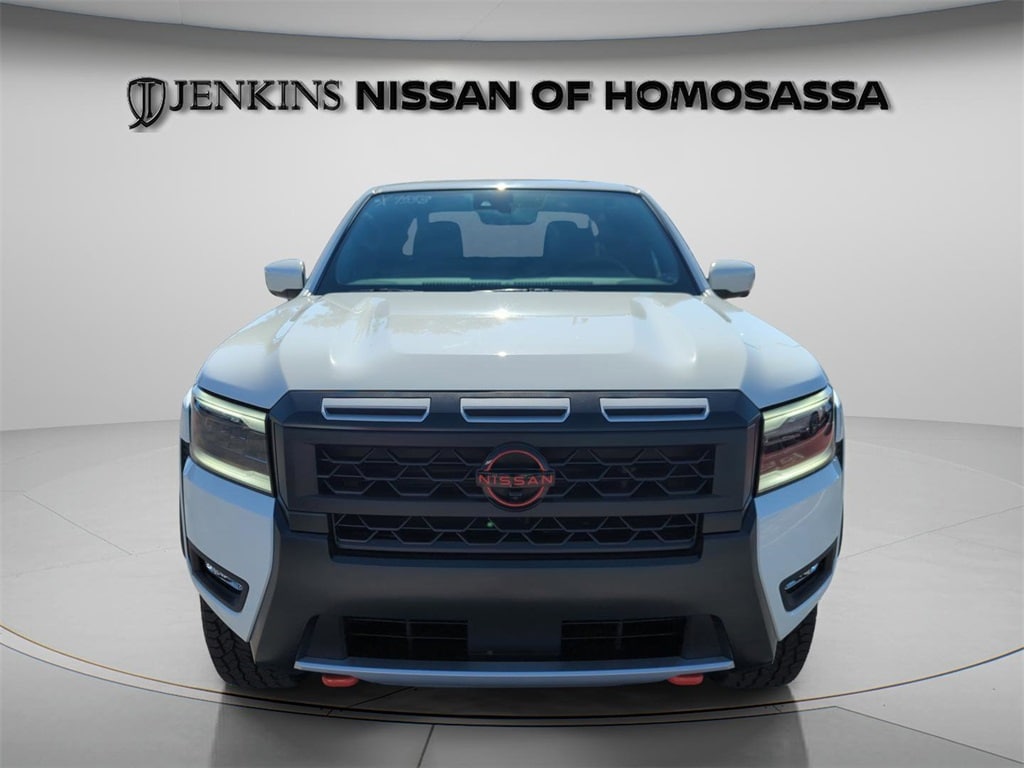 The price does not include tax, tag, license, an electronic filing fee of $449.00**, a private tag agency fee of $199.00**, and a predelivery service charge of $1199.00** **This charge represents costs and profit to the dealer for items such as inspecting, cleaning, and adjusting vehicles, as well as preparing documents related to the sale.* EPA-estimate metric: these are contingent on ideal conditions within a lab. Real-world situations such as carrying passengers or cargo, using climate control, driving style, and ambient temperatures can affect actual metrics. 18/22 City/Highway MPG 4WD. Glacier White 2026 Nissan Frontier PRO-4X 4WD 9-Speed Automatic with Overdrive 3.8L DI DOHC 24V V6