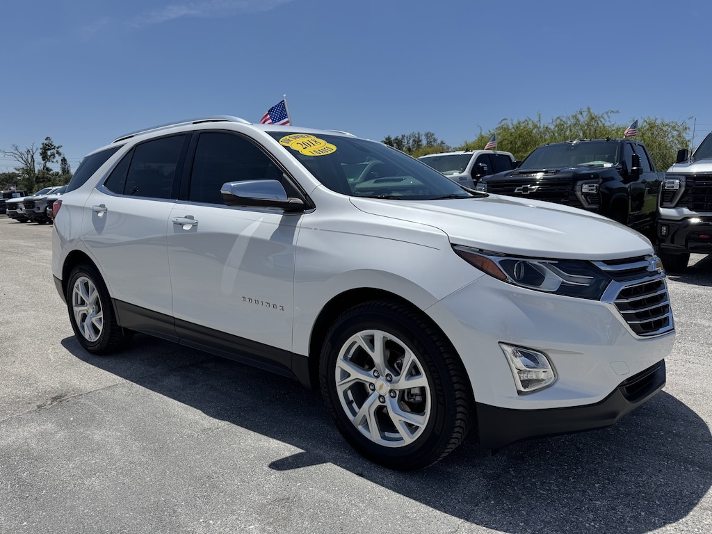 The price does not include tax, tag, license, an electronic filing fee of $449.00**, a private tag agency fee of $199.00**, and a predelivery service charge of $1199.00** **This charge represents costs and profit to the dealer for items such as inspecting, cleaning, and adjusting vehicles, as well as preparing documents related to the sale. * EPA-estimate metric: these are contingent on ideal conditions within a lab. Real-world situations such as carrying passengers or cargo, using climate control, driving style, and ambient temperatures can affect actual metrics. CALL OR TEXT 941-451-5422 NOW FOR PROFESSIONAL SALES ASSISTANCE! 26/32 City/Highway MPG 2 Rear USB Charging-Only Ports, 2 USB Data Ports, 2 USB Ports & Auxiliary Input Jack, 6 Speaker Audio System Feature, 8-Way Power Driver Seat Adjuster, 8-Way Power Front Passenger Seat Adjuster, Automatic temperature control, Bird's Eye View Surround Vision, Bluetooth® For Phone, Confidence & Convenience II Package, Driver Confidence II Package, Driver Convenience II Package, Following Distance Indicator, Forward Collision Alert, Heated Rear Seats, Heated Steering Wheel, IntelliBeam Auto High Beam Headlamp Control, Lane Keep Assist w/Lane Departure Warning, Low Speed Forward Automatic Braking, Preferred Equipment Group 1LZ, Premium audio system: Chevrolet MyLink, Radio: 8" Chevrolet MyLink AM/FM Stereo, SiriusXM Satellite Radio, Ventilated Driver Seat, Ventilated Front Passenger Seat. Iridescent Pearl Tricoat 2018 Chevrolet Equinox Premier FWD 6-Speed Automatic Electronic with Overdrive 1.5L DOHC