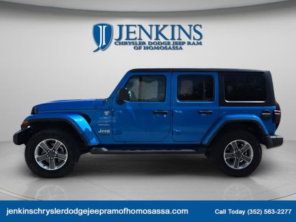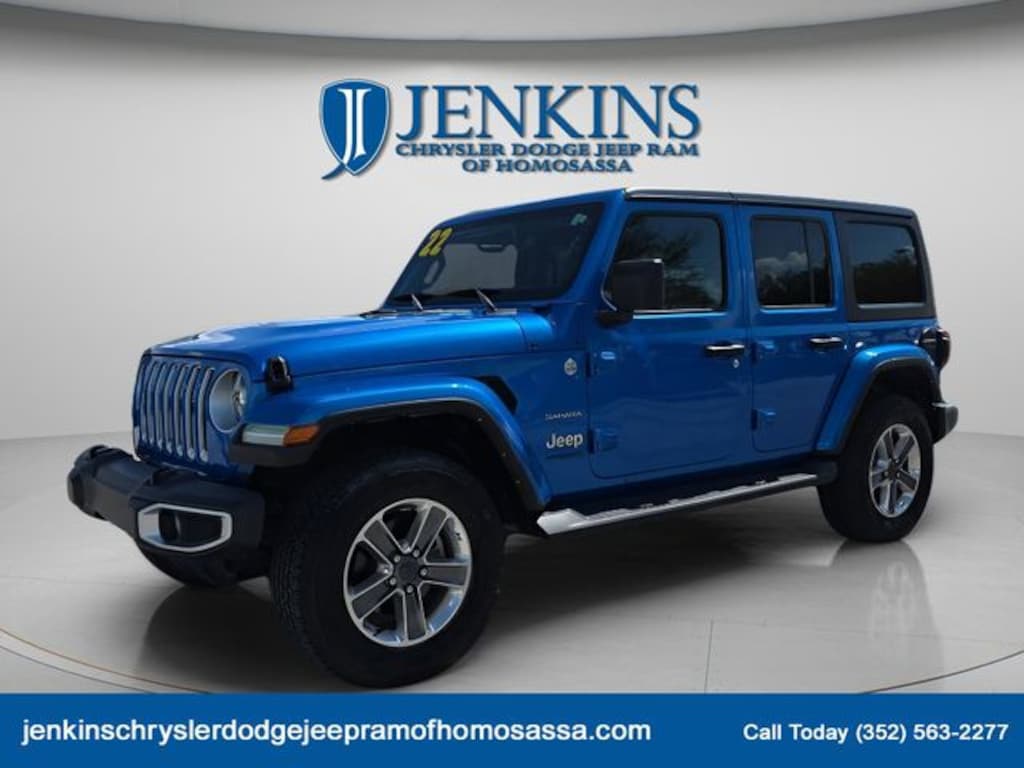 The price does not include tax, tag, license, an electronic filing fee of $449.00**, a private tag agency fee of $199.00**, and a predelivery service charge of $1199.00** **This charge represents costs and profit to the dealer for items such as inspecting, cleaning, and adjusting vehicles, as well as preparing documents related to the sale. * EPA-estimate metric: these are contingent on ideal conditions within a lab. Real-world situations such as carrying passengers or cargo, using climate control, driving style, and ambient temperatures can affect actual metrics. 21/24 City/Highway MPG NAVIGATION SYSTEM, ALLOY WHEELS, BACKUP CAMERA, BLUETOOTH, CLIMATE PACKAGE, HEAT PACKAGE, LEATHER SEATS, POWER PACKAGE, REMOTE START, TOW PACKAGE. CARFAX One-Owner. Clean CARFAX. Recent Arrival! Odometer is 3611 miles below market average! Certified. Hydro Blue Pearl Coat 2022 Jeep Wrangler Unlimited Sahara 4WD 8-Speed Automatic 2.0L I4 DOHC