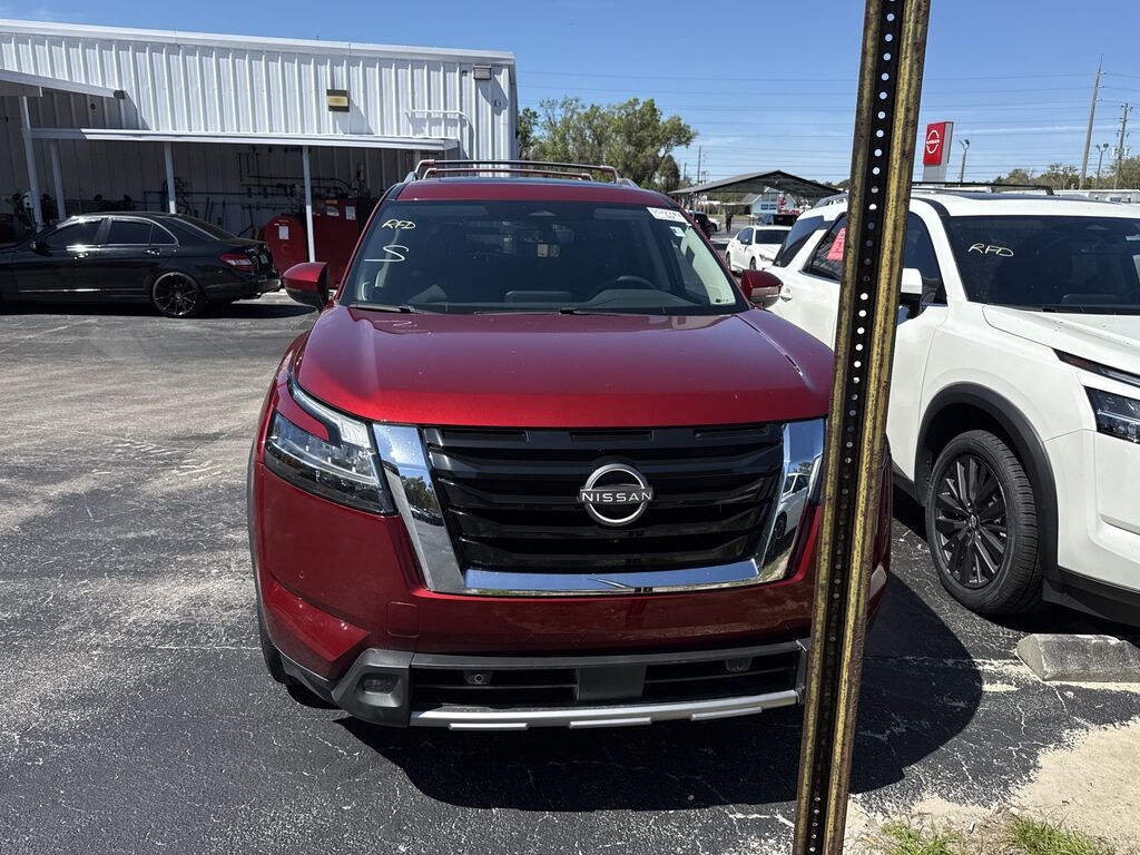 Certified. Scarlet Ember Tintcoat Odometer is 27554 miles below market average! 20/27 City/Highway MPG 2023 Nissan Pathfinder SL Premium Package FWD 9-Speed Automatic V6 Jenkins has been doing business for over 50 years and we appreciate your business! Our used cars undergo an extensive Detail and Reconditioning Process, and are thoroughly inspected to meet the criteria for our exclusive warranty. Buy with confidence at Jenkins Nissan of Homosassa! We spend an average of $2779 in Detail and Reconditioning on every used car. The Reconditioning and Maintenance Repair History is Available Upon Request. We don't just inspect, we fix :)