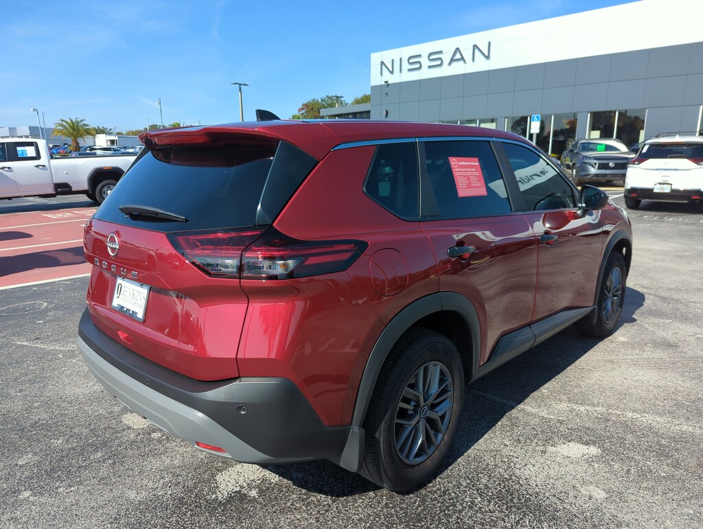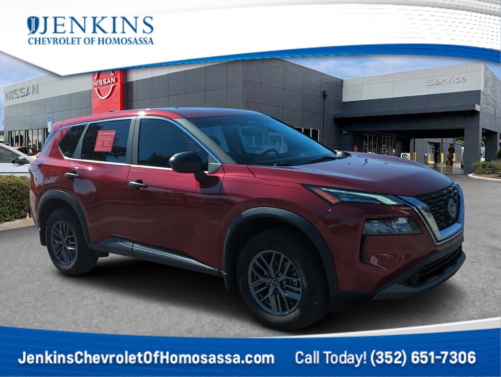 This vehicle comes equipped with 17" Aluminum Alloy Wheels, 4 Speakers, 4-Wheel Disc Brakes, 5.604 Axle Ratio, ABS brakes, Air Conditioning, Alloy wheels, AM/FM Radio, AM/FM radio: SiriusXM, Auto High-beam Headlights, Black Splash Guards (Set of 4), Blind Spot Warning, Brake assist, Bumpers: body-color, Cloth Seat Trim, Delay-off headlights, Driver door bin, Driver vanity mirror, Dual front impact airbags, Dual front side impact airbags, Electronic Stability Control, First Aid Kit, Floor Mats w/1-Piece Cargo Area Protector, Four wheel independent suspension, Front anti-roll bar, Front Bucket Seats, Front Center Armrest, Front reading lights, Fully automatic headlights, Illuminated entry, Knee airbag, Low tire pressure warning, NissanConnect featuring Apple CarPlay and Android Auto, Occupant sensing airbag, Outside temperature display, Overhead airbag, Overhead console, Panic alarm, Passenger door bin, Passenger vanity mirror, Power door mirrors, Power steering, Power windows, Radio data system, Rear anti-roll bar, Rear Parking Sensors, Rear seat center armrest, Rear side impact airbag, Rear window defroster, Rear window wiper, Remote keyless entry, Speed control, Speed-Sensitive Wipers, Split folding rear seat, Spoiler, Steering wheel mounted audio controls, Tachometer, Telescoping steering wheel, Tilt steering wheel, Traction control, Trip computer, and Variably intermittent wipers . Jenkins Chevrolet of Homosassa proudly serving Homosassa, Spring Hill, Hernando, Crystal River, Beverly Hills, Inverness. Just a half hour North of Buccaneer Bay. Come see the large, expansive inventory of the Jenkins Auto Group. 30/37 City/Highway MPG Clean CARFAX. Scarlet Ember Tintcoat 2023 Nissan Rogue S FWD CVT with Xtronic 1.5L I3 Turbocharged DOHC 12V LEV3-ULEV50 201hp